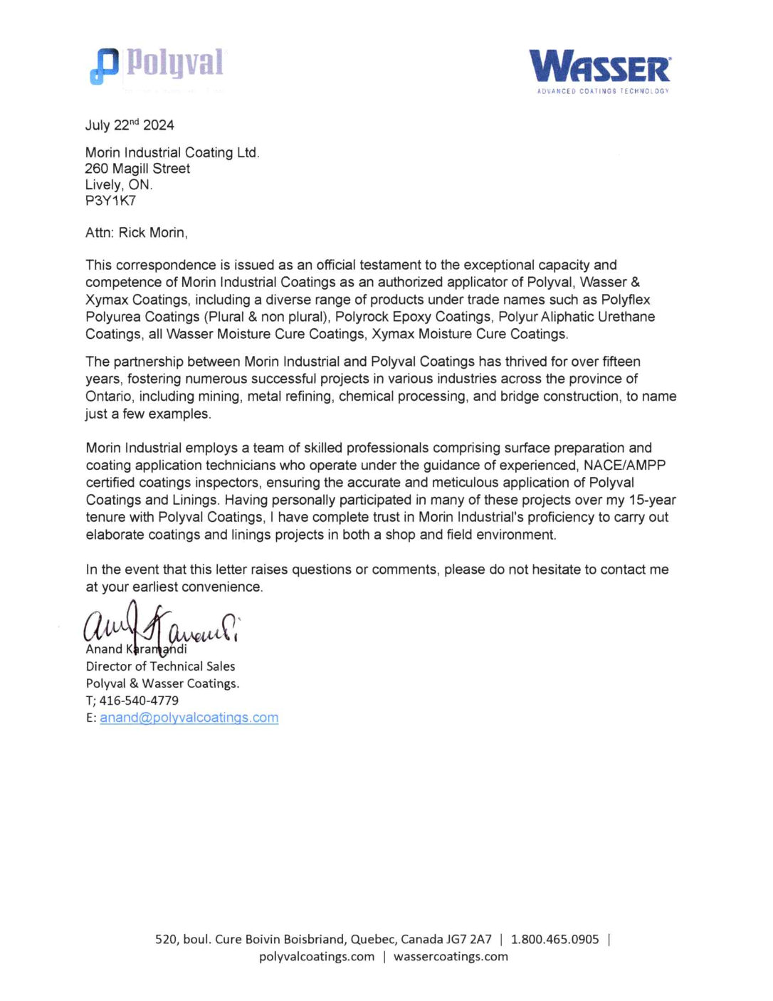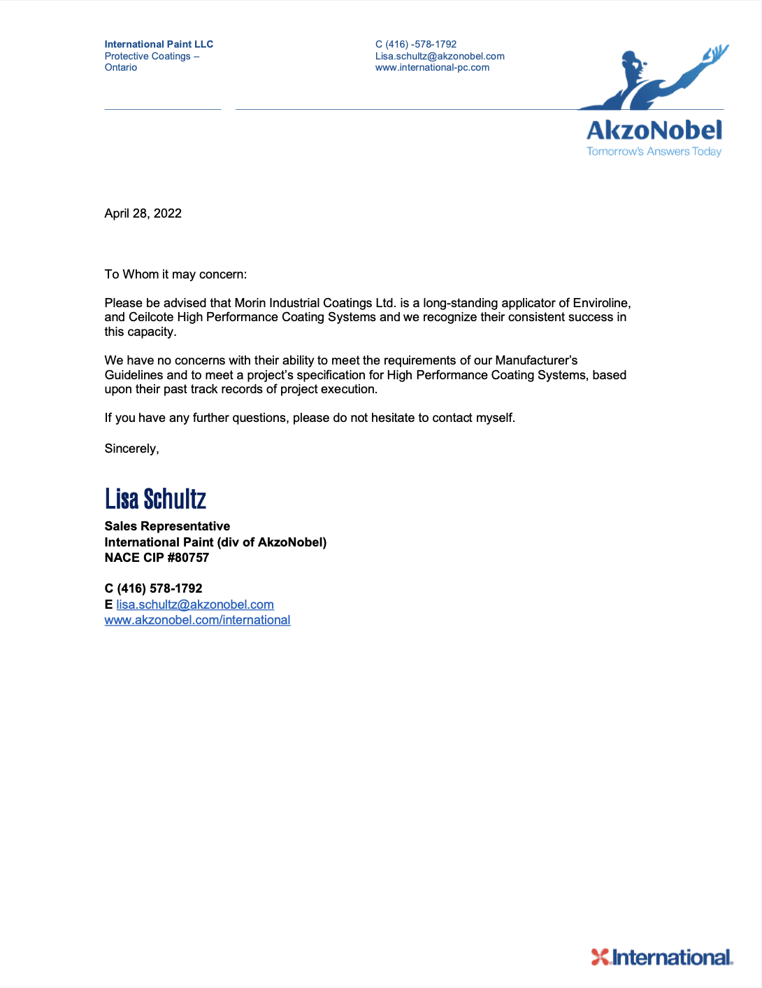 Morin is proud to offer experienced and certified coatings inspectors on staff